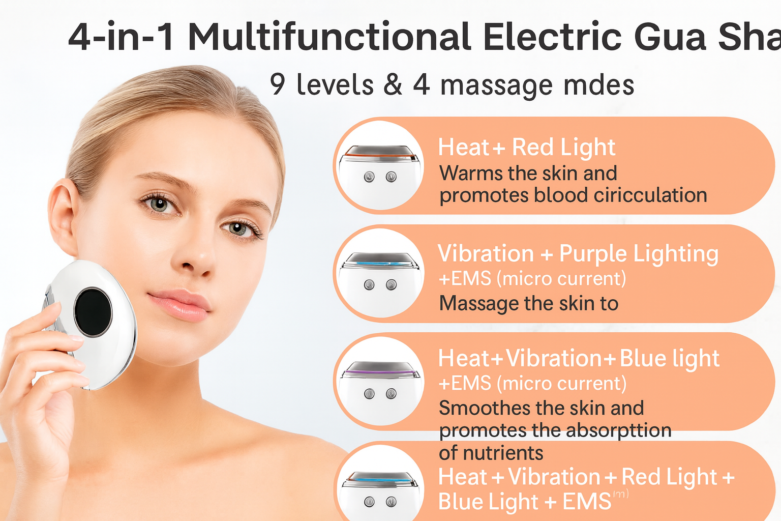 Transform your beauty routine with our innovative 4-in-1 facial massager that combines cutting-edge technology for a luxurious and effective skincare experience, leaving your skin radiant and youthful.